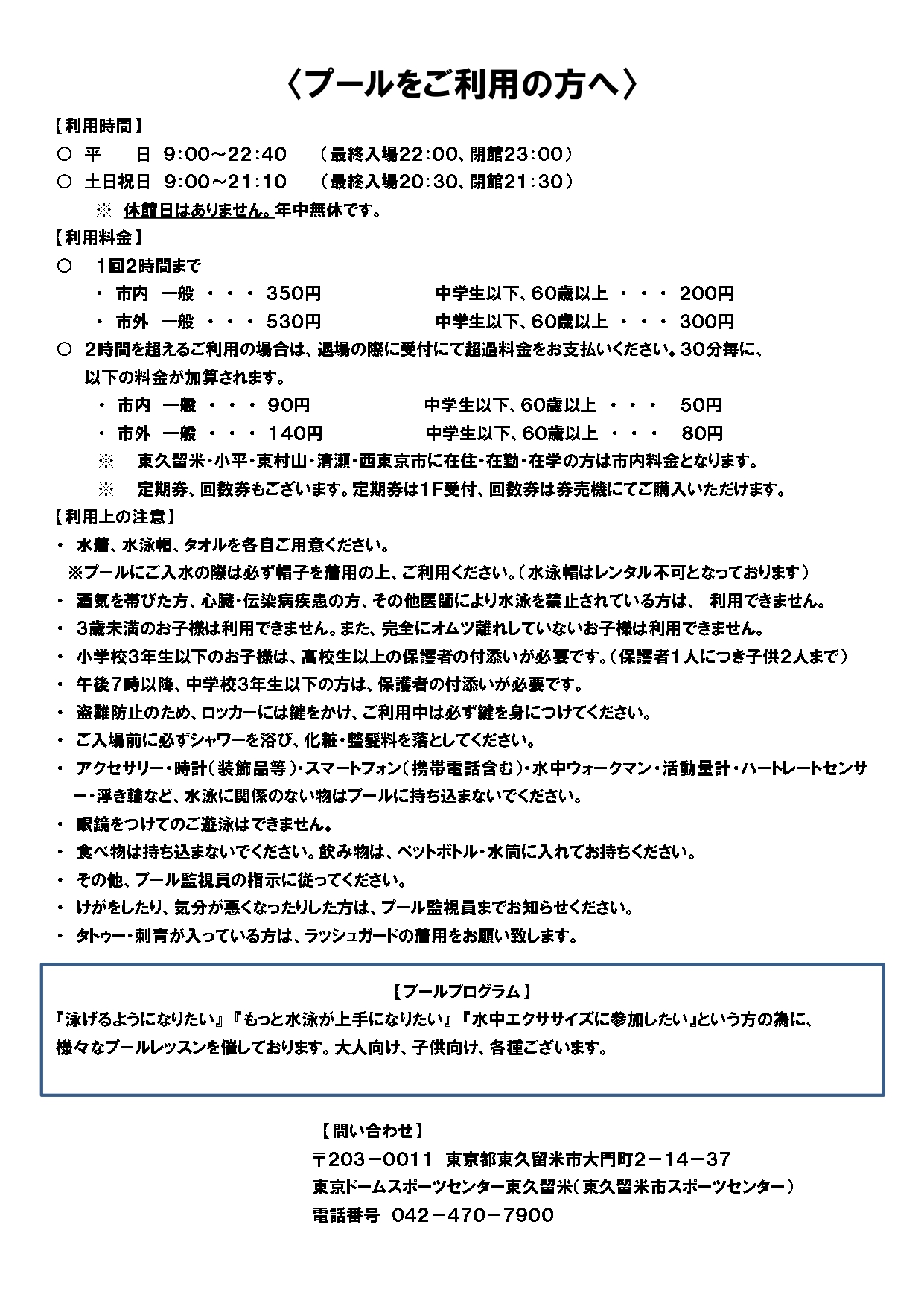 プール | 1ヶ月:3,500円 | 1ヶ月:2,000円 | |