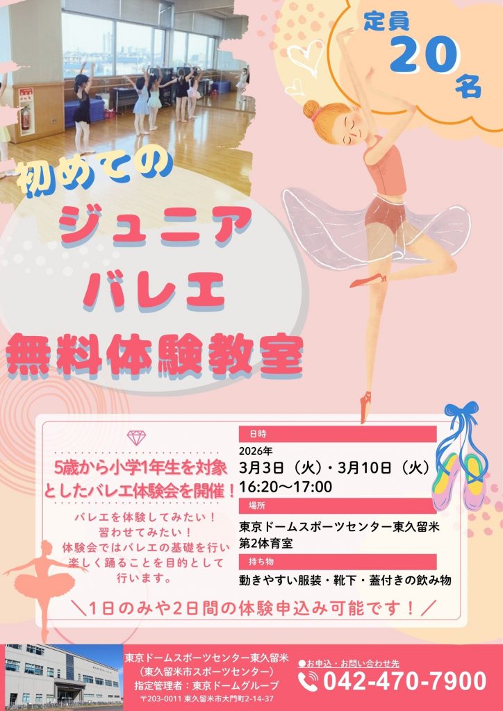 初めてのジュニアバレエ無料体験教室【R8/2/13更新】