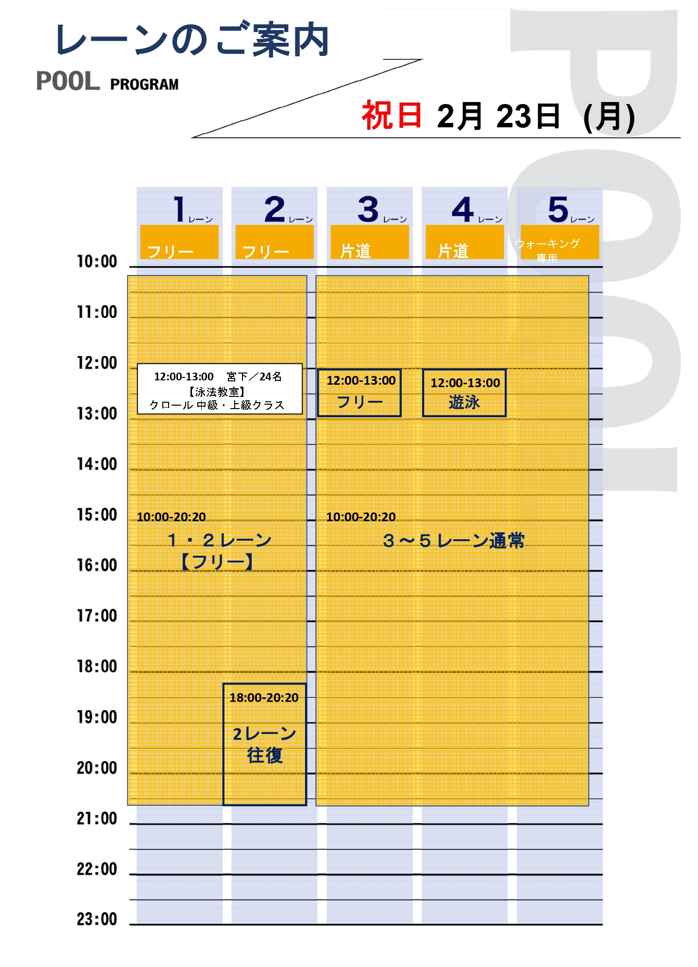 プール祝日レーン案内