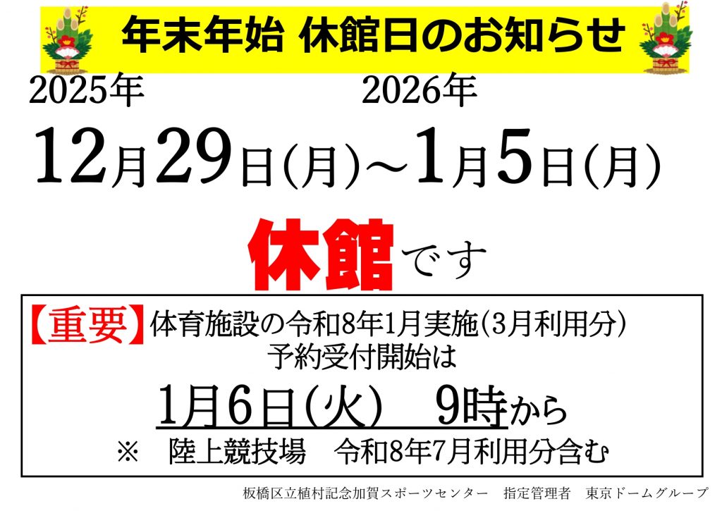 2025年12月29日(月)~1月5日(月)は年末年始休館日です。