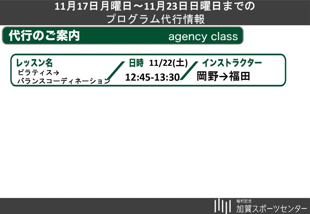 11月17日(月)~11月23日(日)プログラム代行休講のおしらせです。