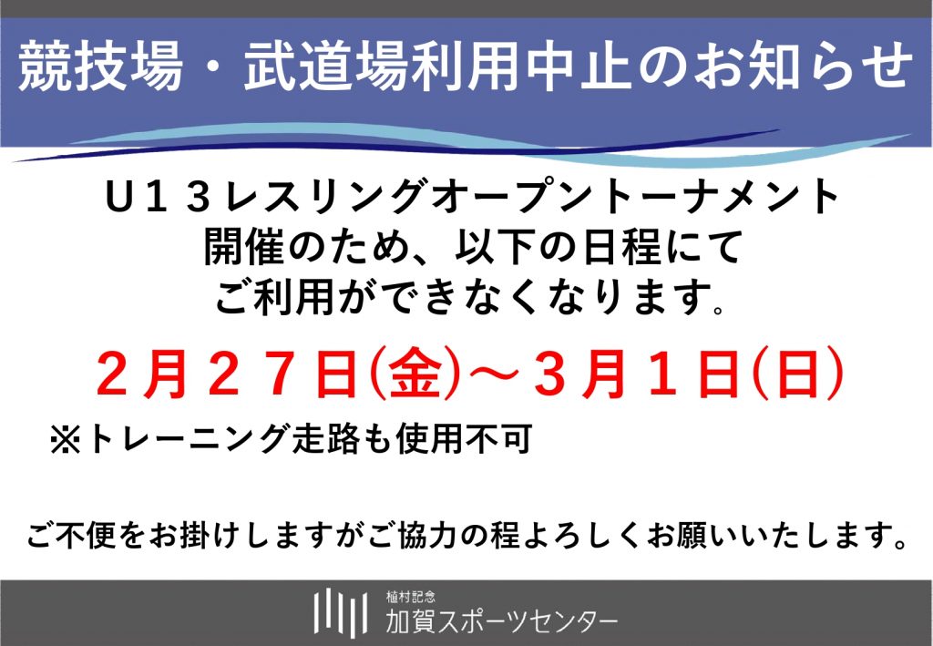トレーニング走路もご利用いただけません。