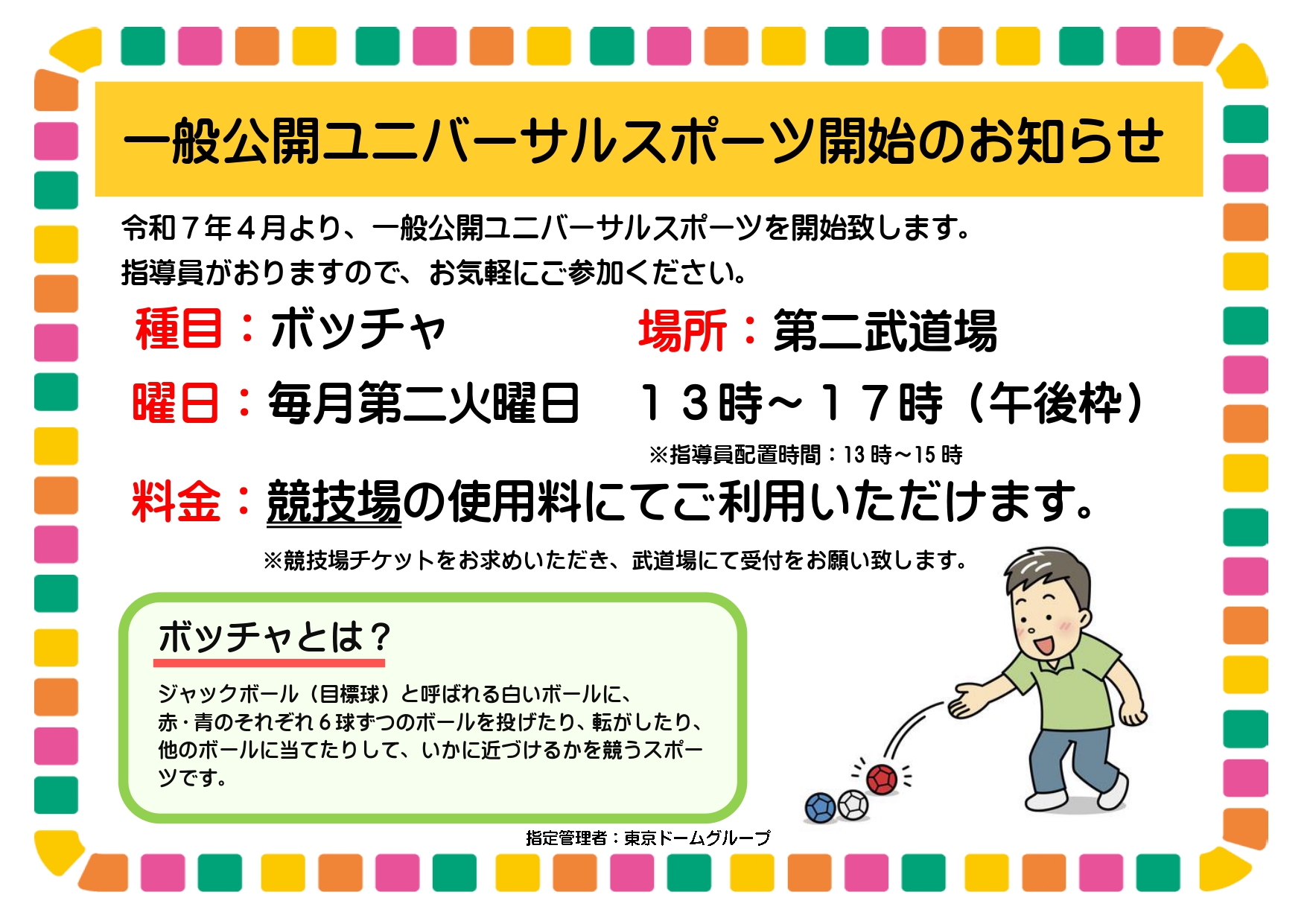●毎月第2火曜日午後第2武道場はユニバーサルスポーツ(ボッチャ)となります。詳細はこちら