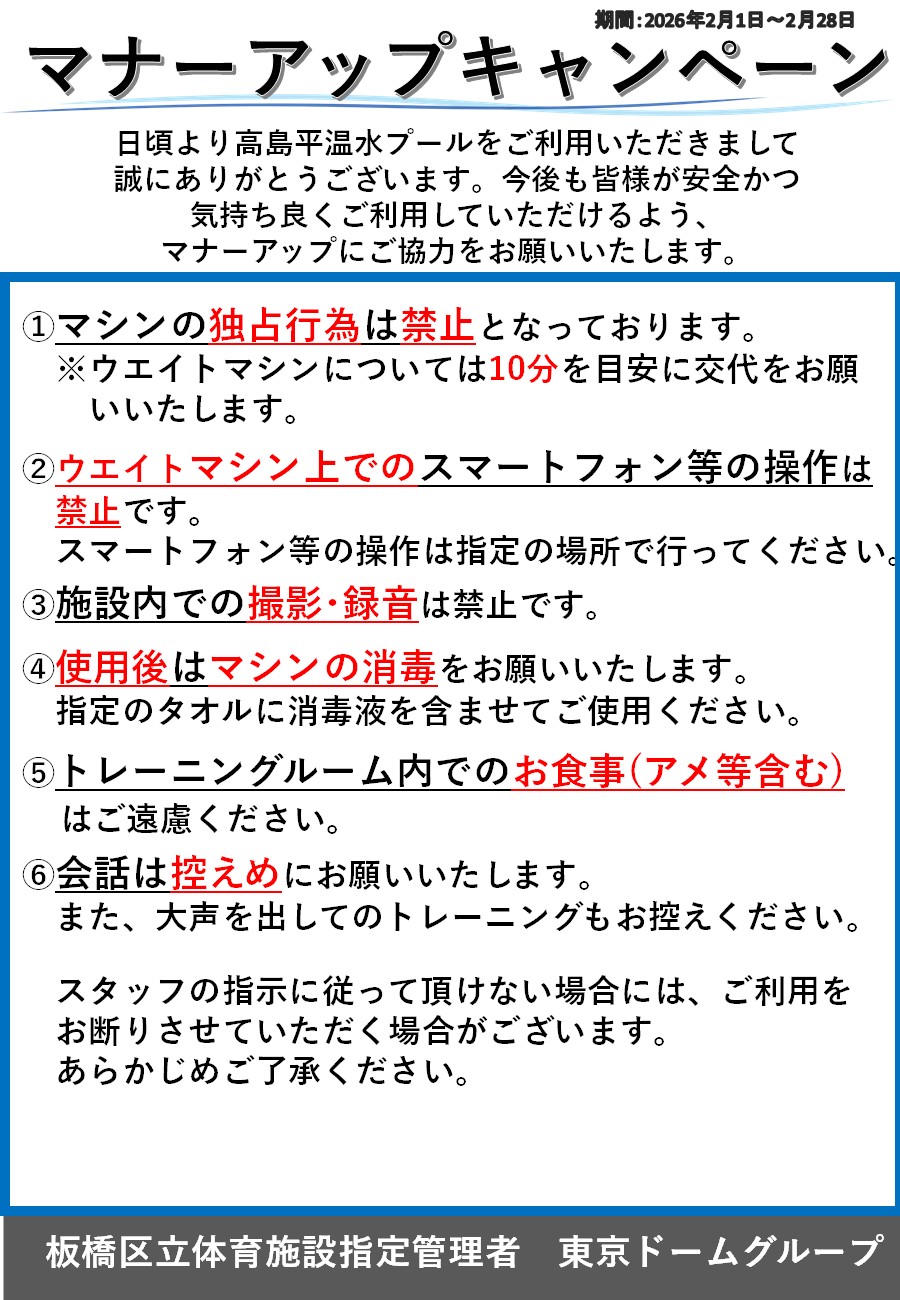 2/1~トレーニングルーム マナーアップキャンペーンのお知らせ