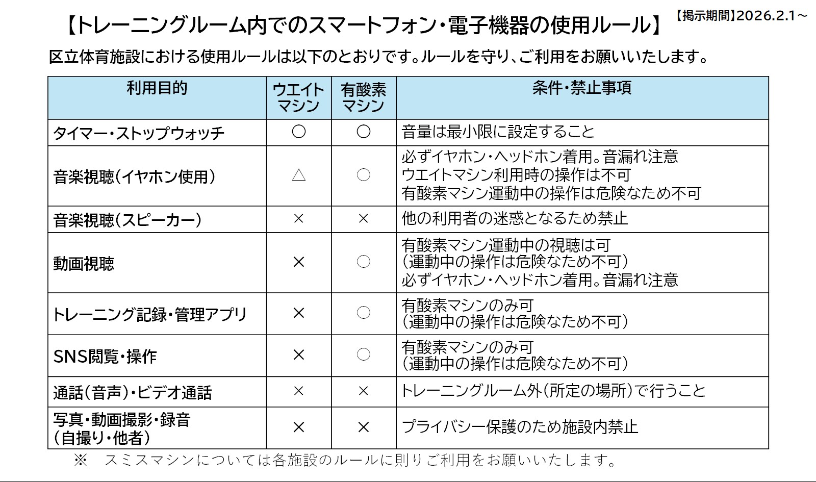 2/1~トレーニングルームにてマナーアップキャンペーンを実施いたします。