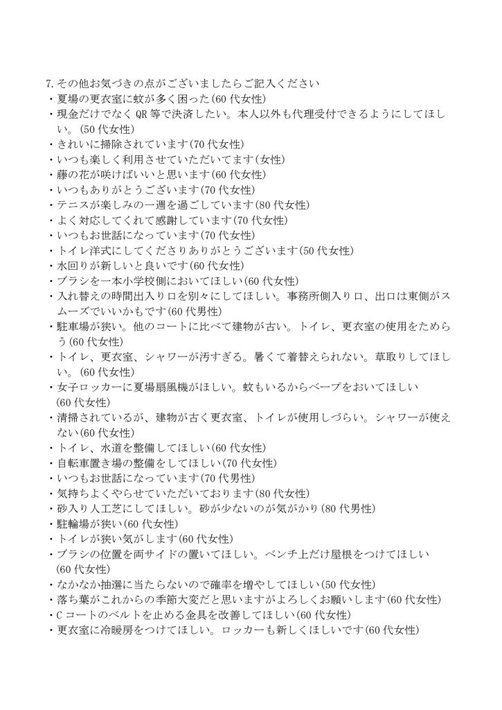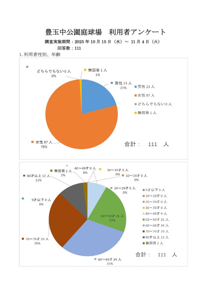 豊玉中公園庭球場では、令和7年10月に利用者アンケートを実施しました。その結果をご報告します。