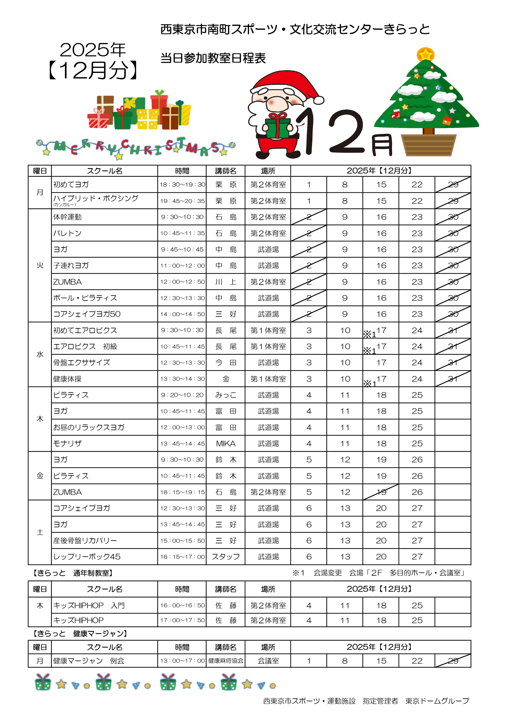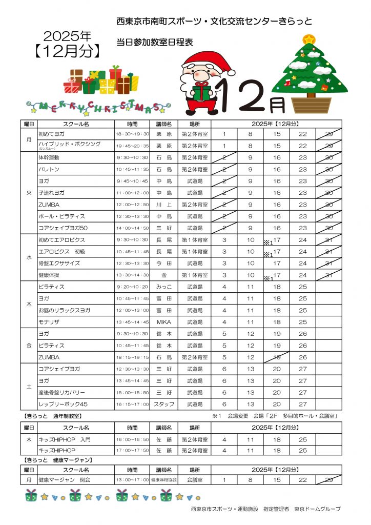 【2025年12月】当日参加教室 日程表(R7/11/15掲載)
