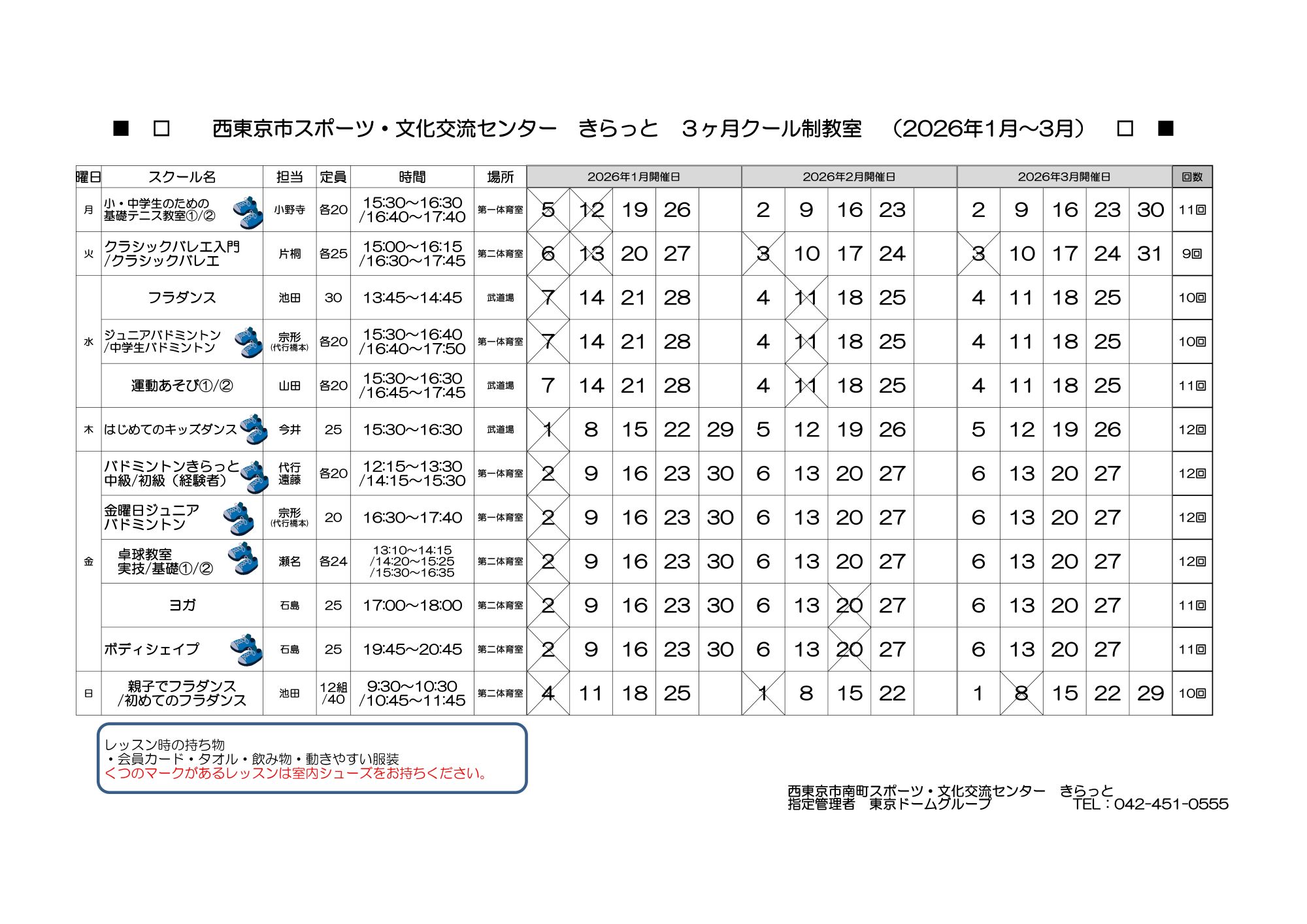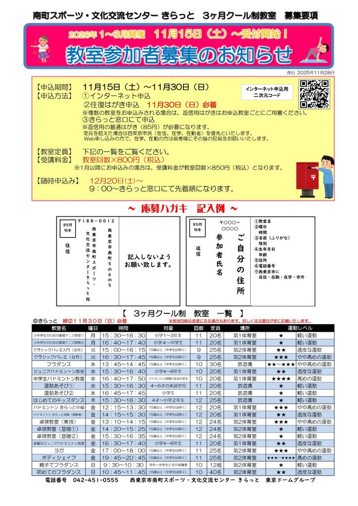 【R8 1~3月分】3ヶ月クール制教室 参加者募集のお知らせ(R7/11/15掲載)