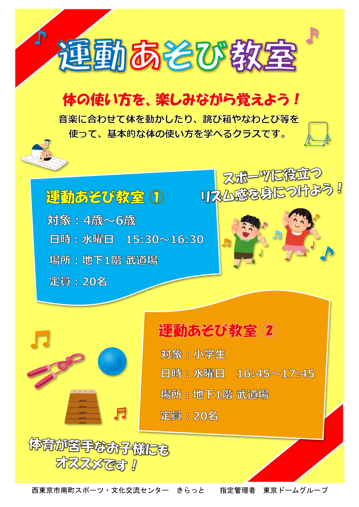 幼児向け体操教室からダンスやバドミントン等、お子様向けの教室はこちらです。