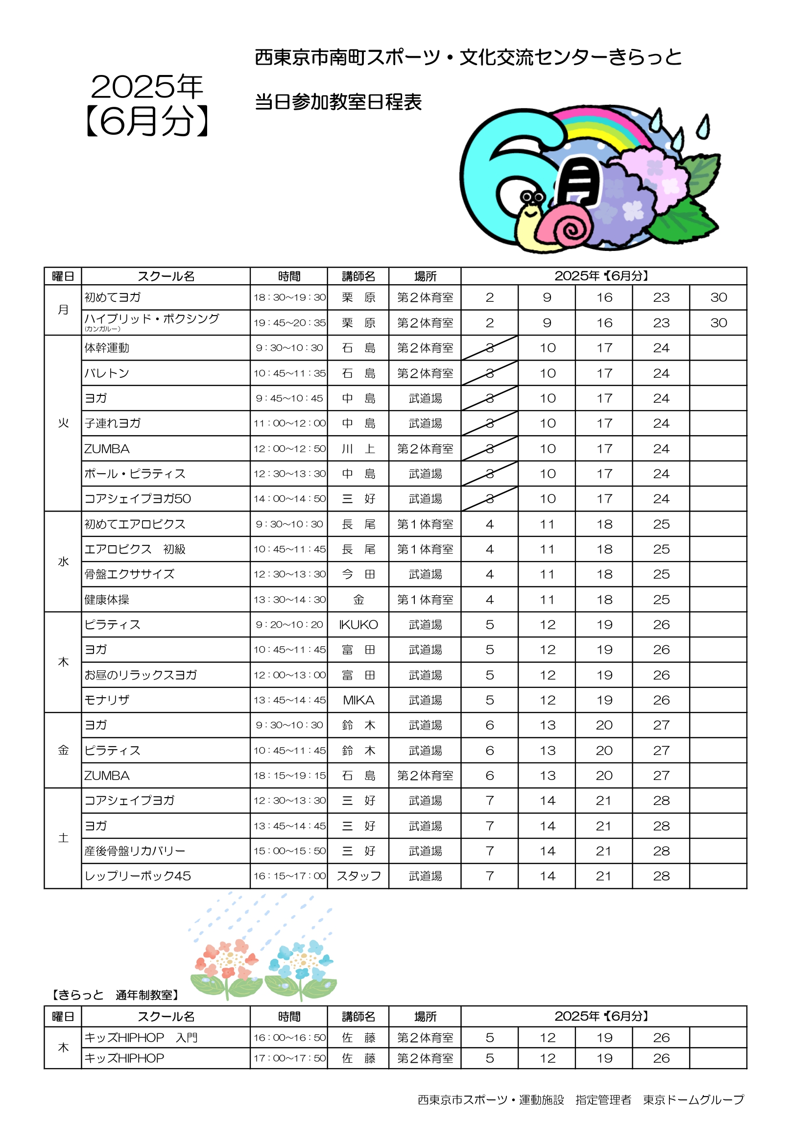 各教室の定員に関しましては、上記の教室内容一覧からご確認ください。