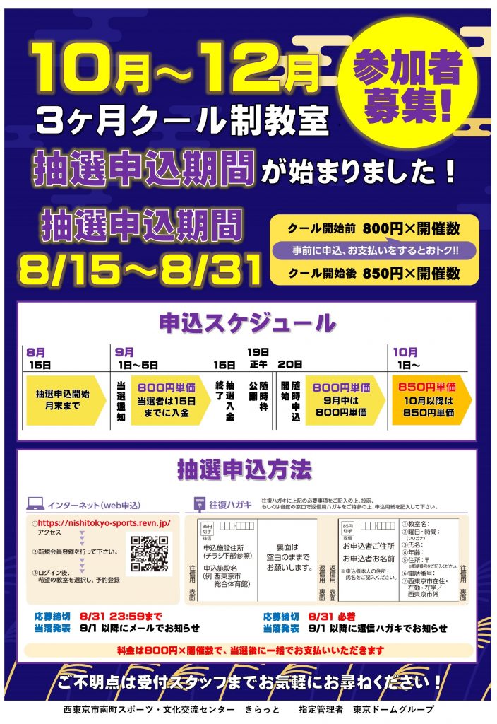 また、当選された場合のお支払いは教室開始の前月1日~15日となります。