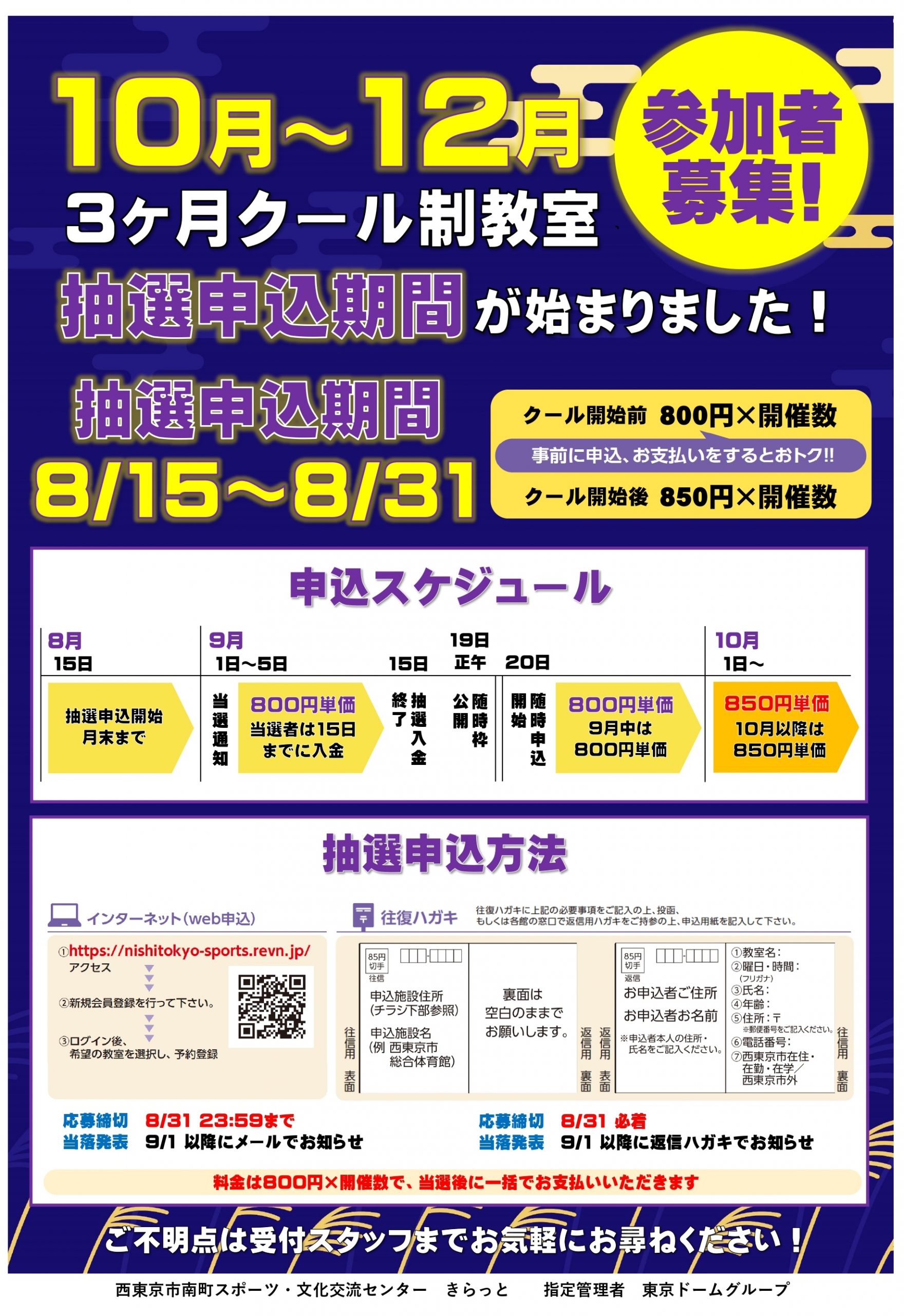また、教室開始月の1日以降も定員に空きのある教室は、教室開始後も随時申込(先着順)が可能ですが、
