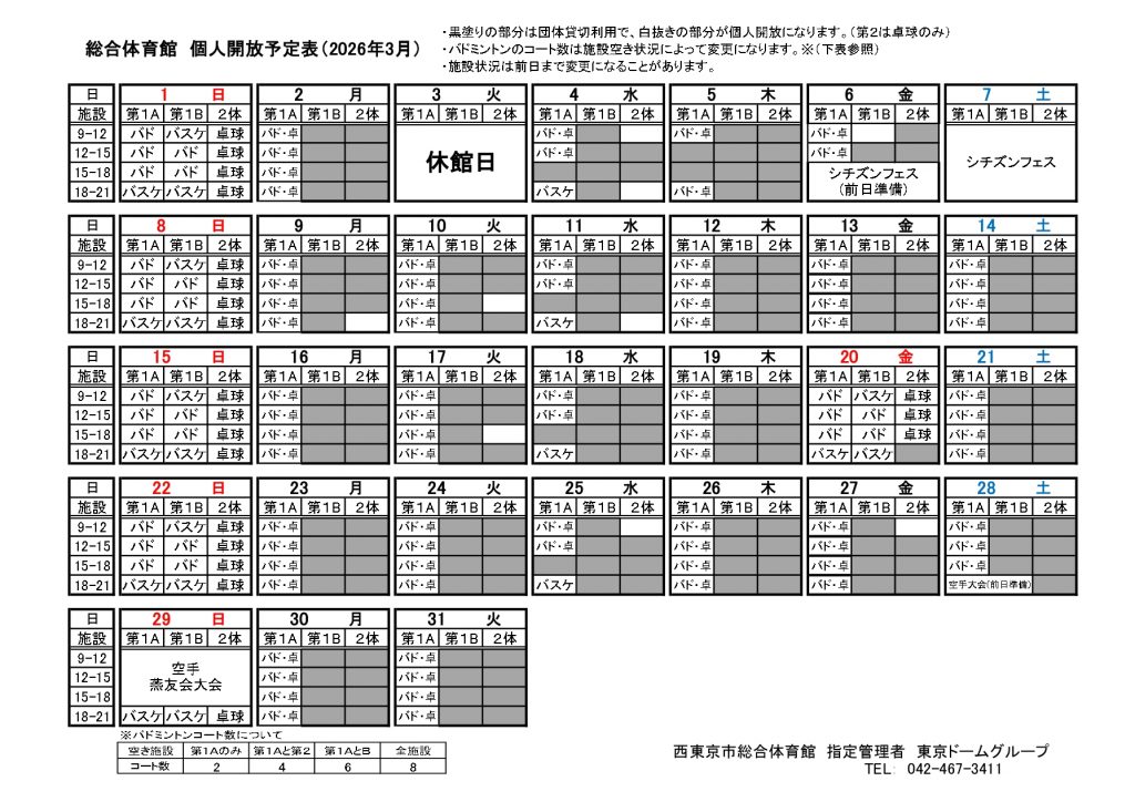 個人開放予定表とご利用方法(R8.3.1更新)