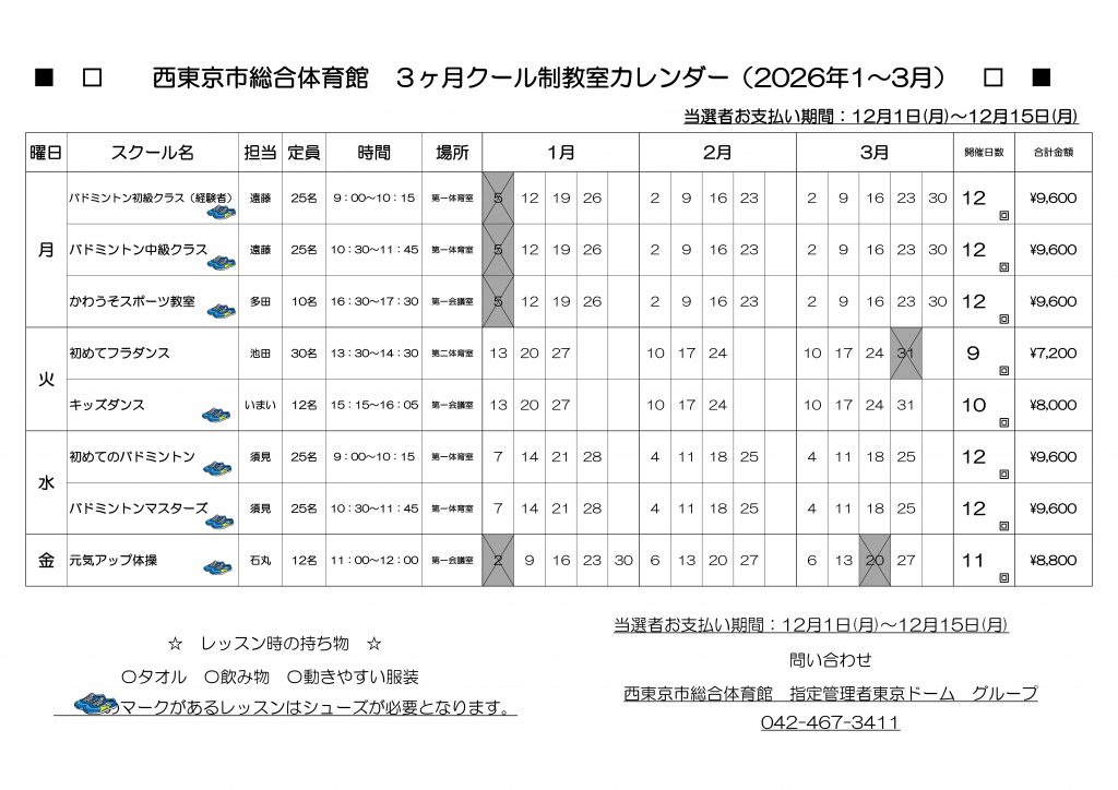 11月15日(土)から3ヶ月クール制教室の申込みが始まります。
