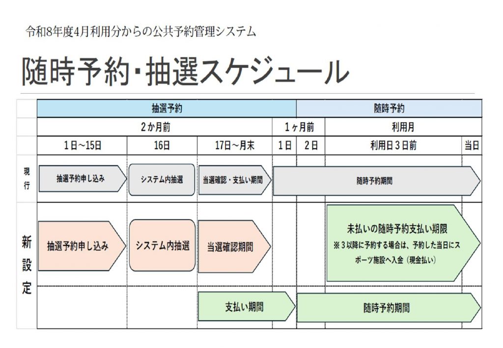令和8年4月利用分からの公共予約管理システム変更に伴い、運用ルールについての変更がございます。