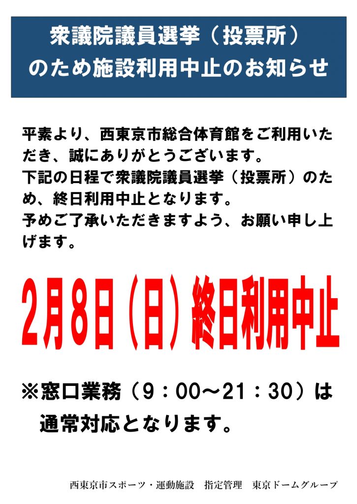 2/8(日)衆議院議員選挙に伴う利用中止のお知らせ