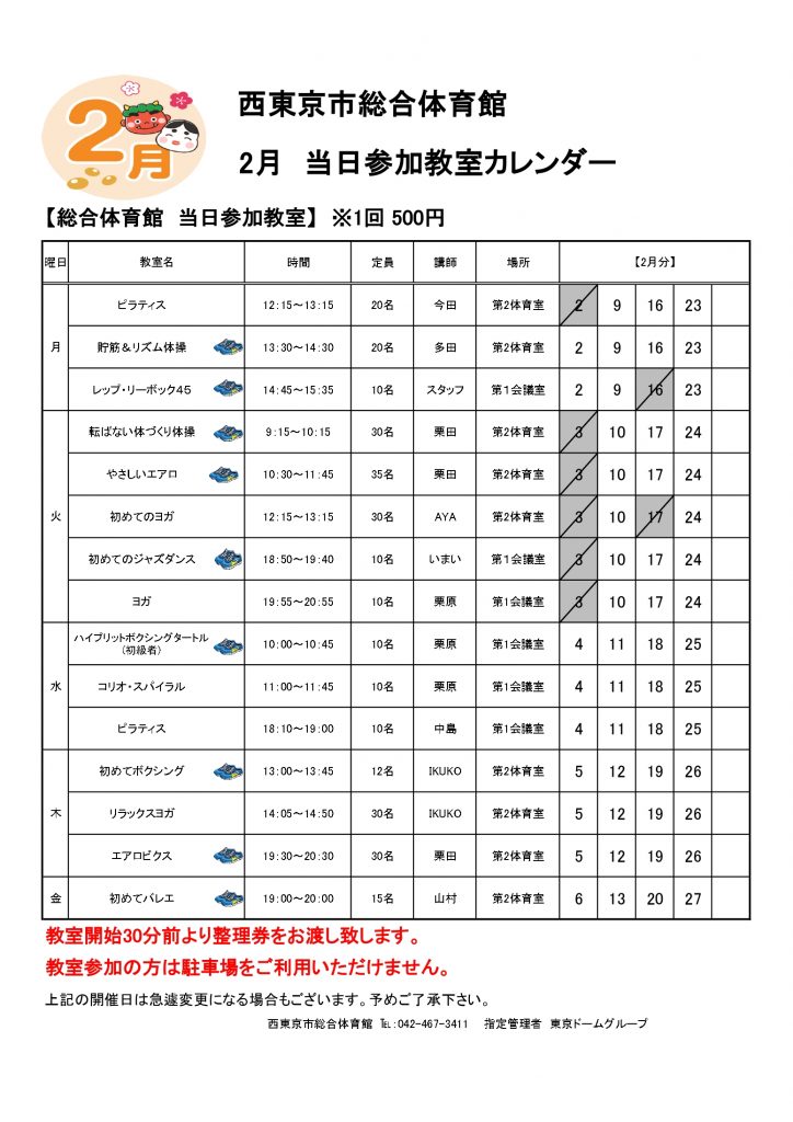 1回500円で参加できる、事前登録・予約は不要のお教室です。