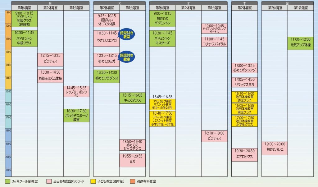 ヨガ・ピラティス・エアロビクス・体操・燃焼系・筋力アップなど、様々なお教室を開催しています。