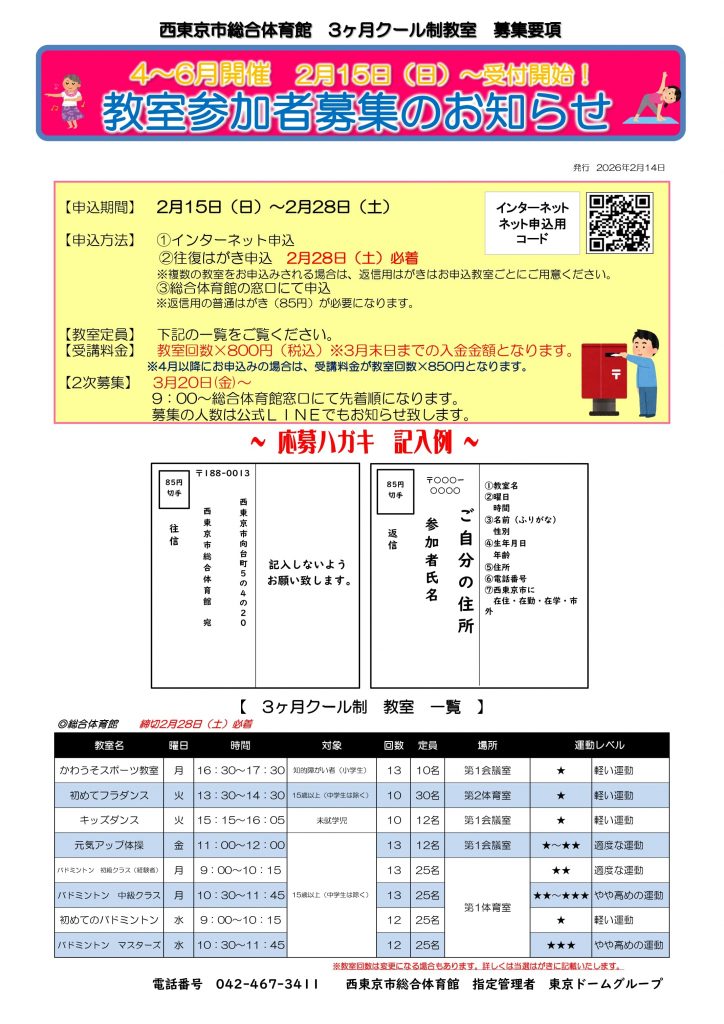 2/15(日)から申込開始!!4月~6月開催 参加者募集のお知らせ