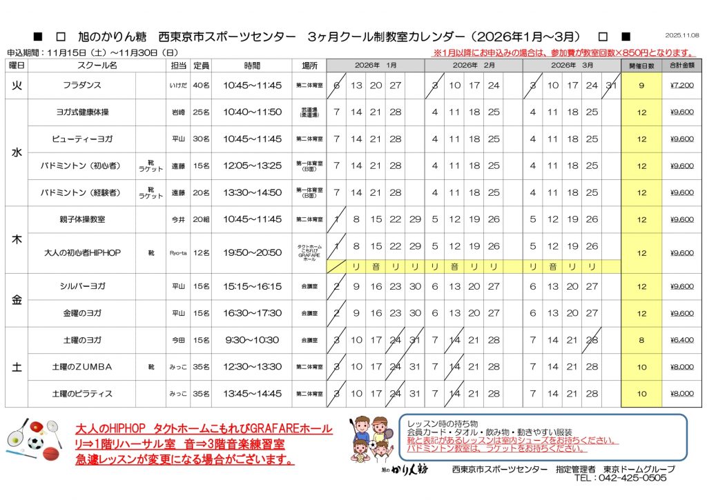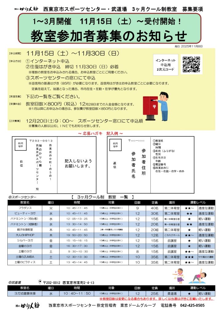 【3ヶ月クール制(1~3月)申込のご案内】