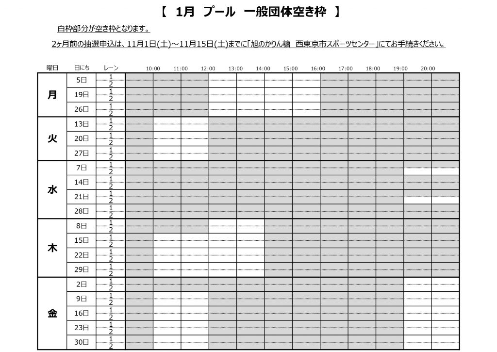プール一般団体利用 1月分抽選申込可能枠(R7.11.1掲載)