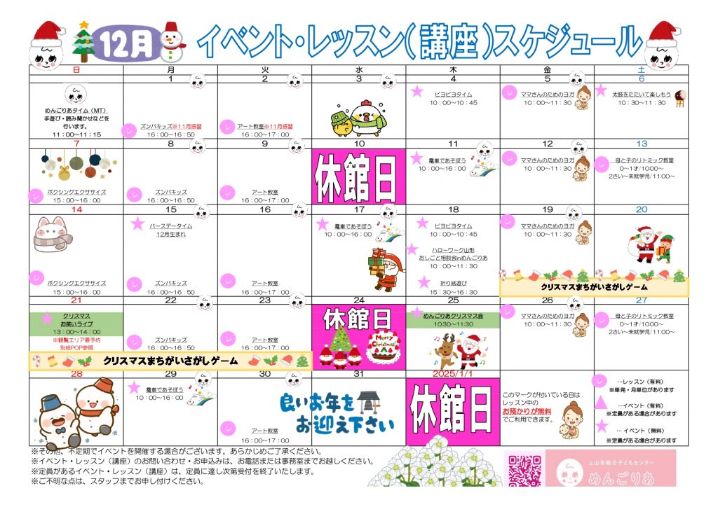 2025年12月イベント・レッスンスケジュールをお知らせいたします。