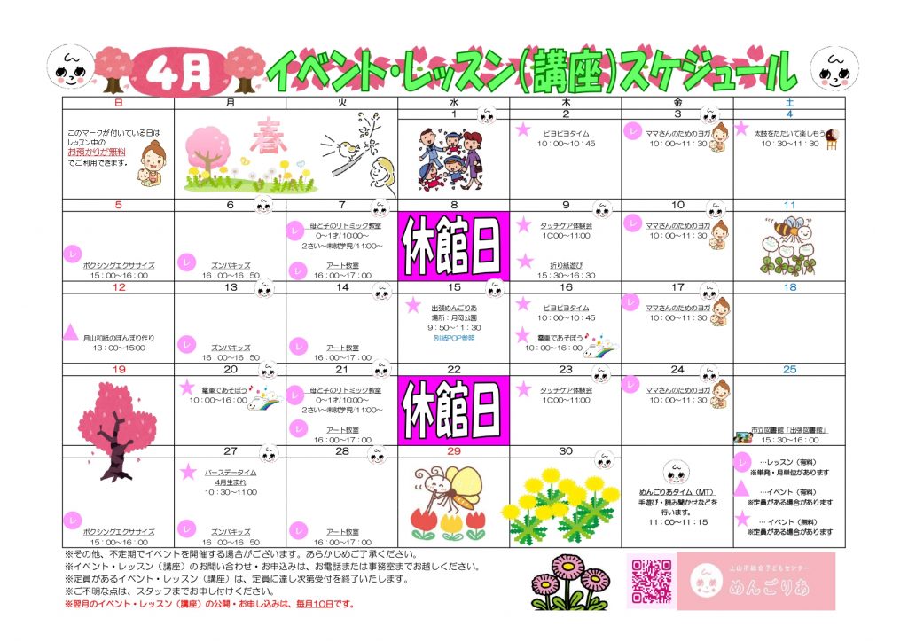 2026年4月イベント・レッスンスケジュールをお知らせいたします。
