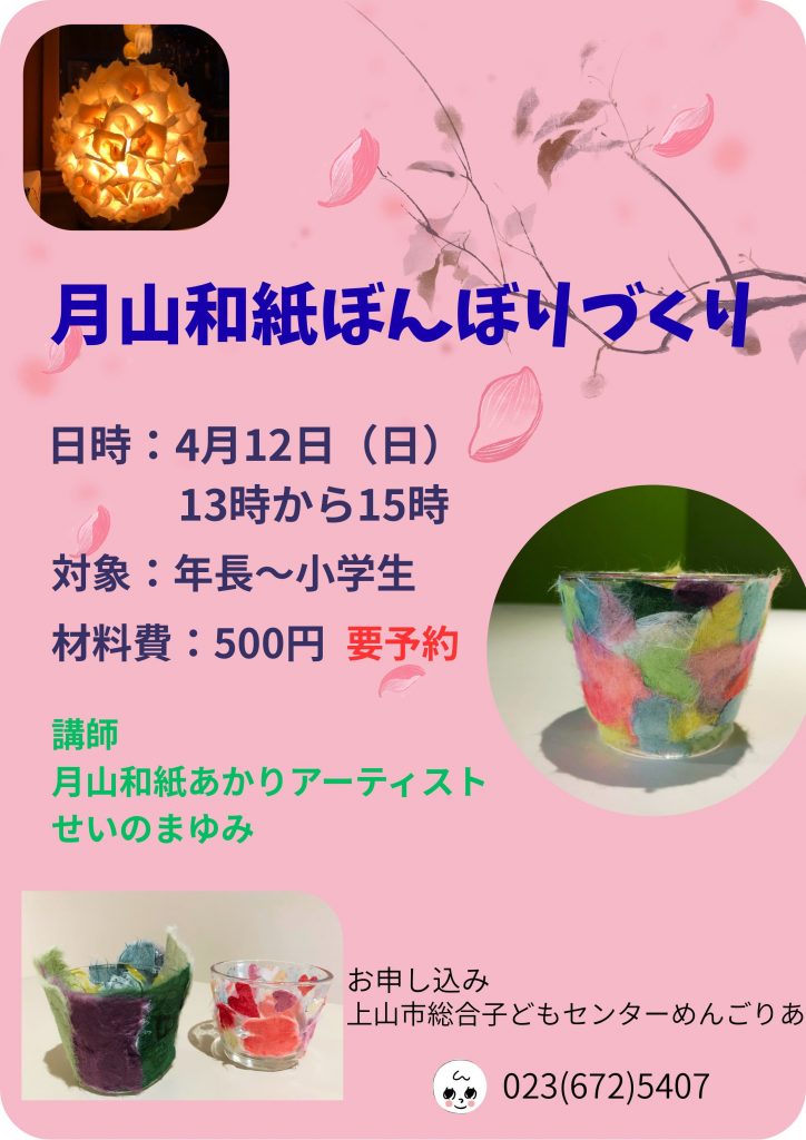 〇月山和紙でぼんぼりづくり ※要予約