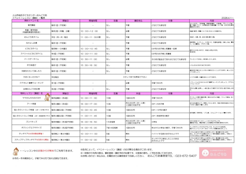 →イベント・レッスンスケジュール一覧PDFデータはこちら(上記の画像が見えずらい場合はクリックしてください。)