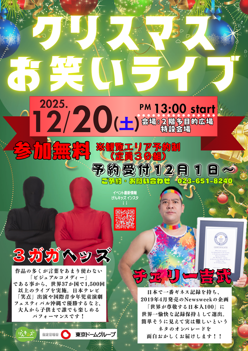 12月20日(土)にクリスマスお笑いライブを開催いたします。