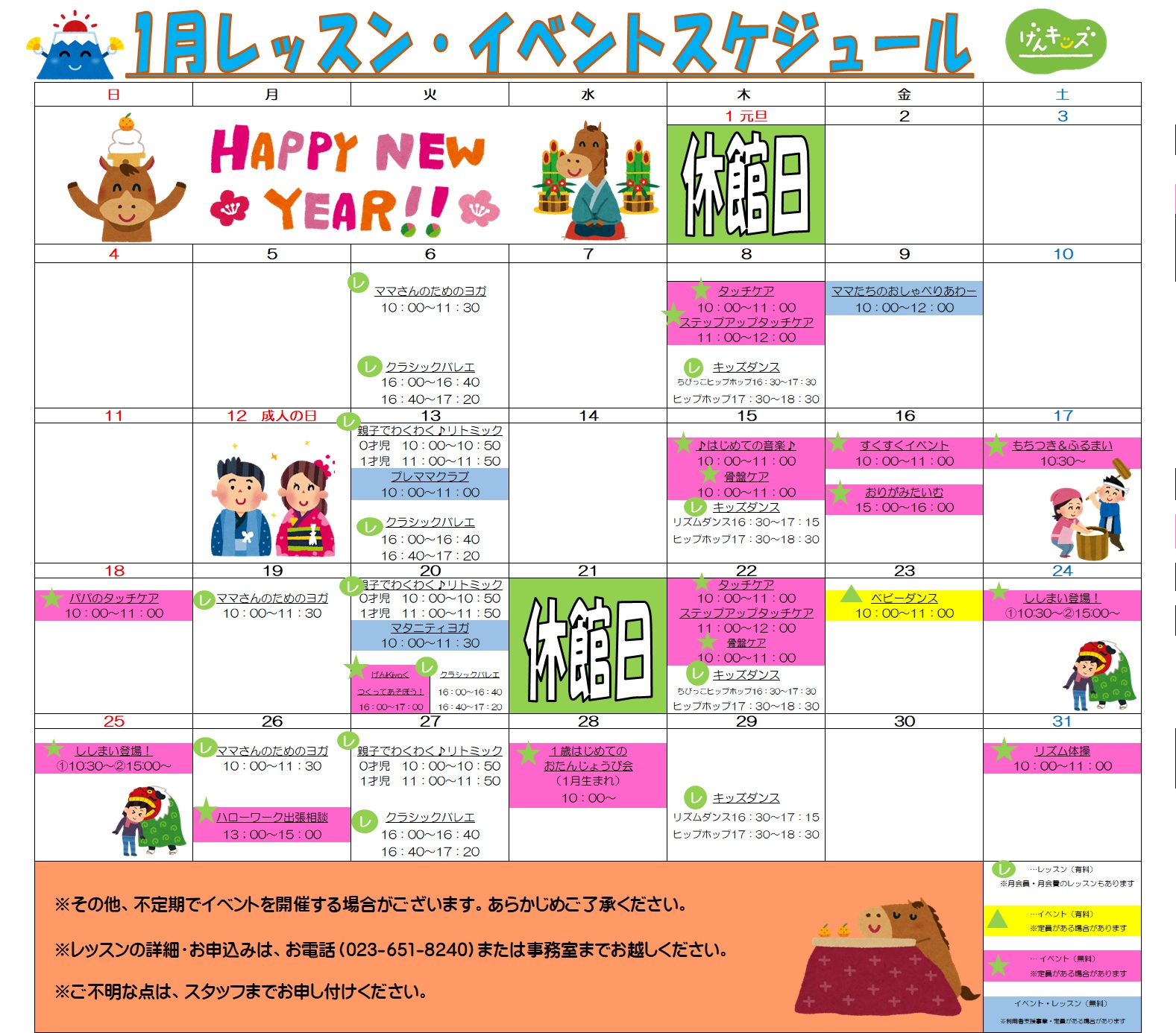 12月10日より、1月のレッスン・イベントの予約受付を開始いたします。