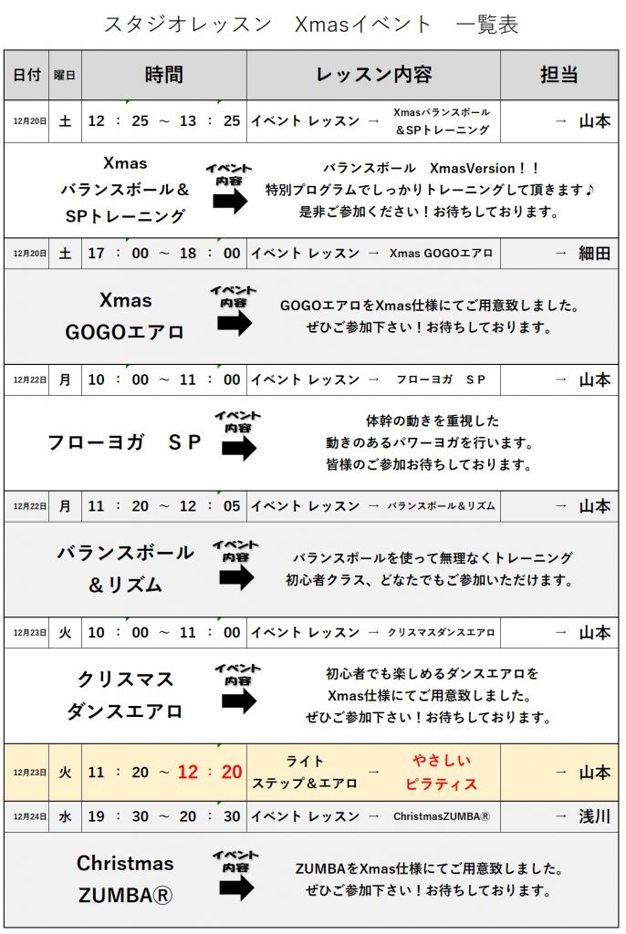 Xmasスタジオイベントのお知らせ【12.20~12.25】
